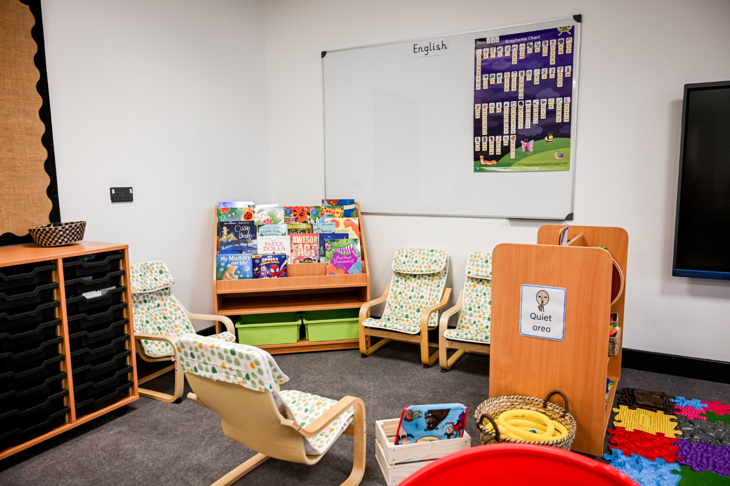 Two additional breakout rooms provide the pupils in The Nest the opportunity to have time away from the main classroom, should they need it. This could be for an individual or group activities or interventions. One of the rooms has calm lighting that can be used to support regulation; the other room is set up as a learning area that can be used if a quieter working environment is needed.